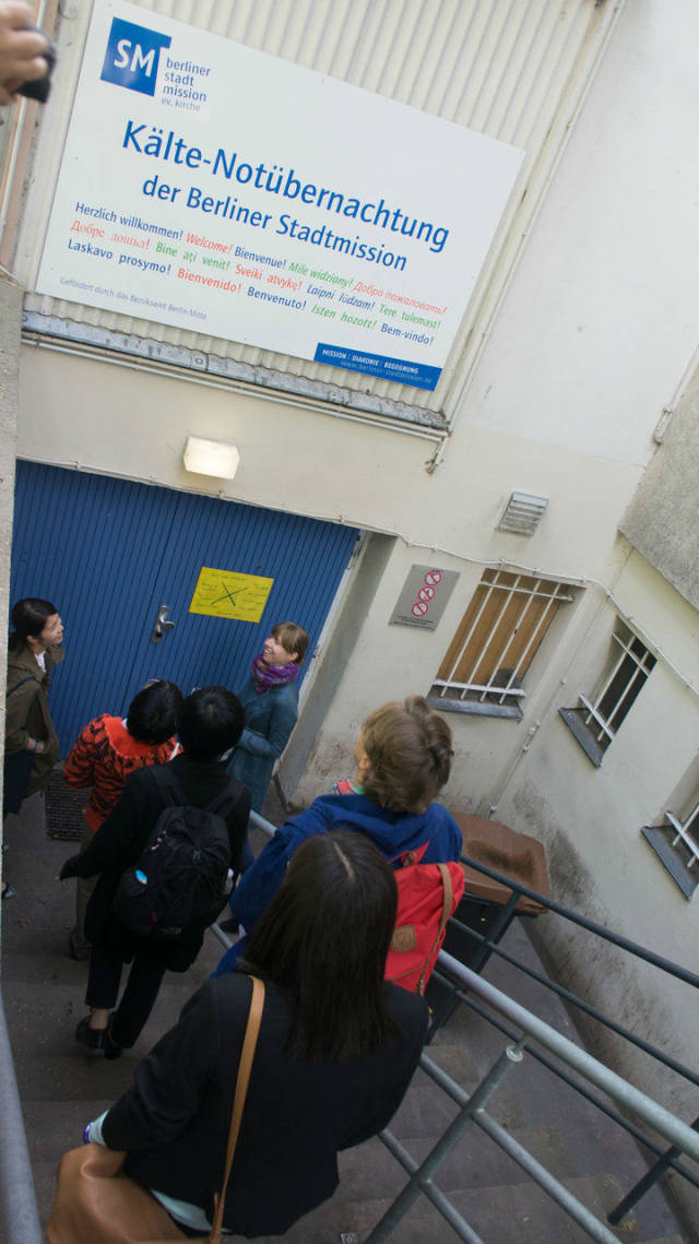 银杏伙伴参观的是位于柏林火车站旁的一个救助站,这个救助站在气候温暖的3-11月间,流浪者并不多,但每当冬天来临,每到下午5点就会有很多人来排队入住,当然也会有大量志愿者前来帮忙。这里的地下室或开放给流浪者居住,大厅里有厨房,可以为流浪人员提供一顿晚餐和早餐,还会有极低价格的咖啡、牛奶等出售,购买行为让流浪者觉得这并非施舍,因而能够获得自尊。